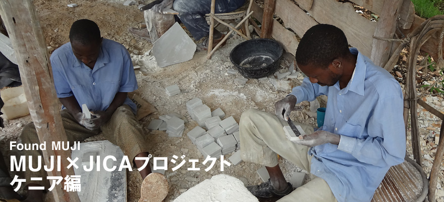 MUJI×JICAプロジェクトは、2010年末に無印良品がクリスマス商品の企画で協力できないかとJICAに打診を行ったことがきっかけで始まりました。打診を受けたJICAが全世界の事務所に呼びかけたところ80を超えるアイデアが寄せられましたが、その中で最終的に選ばれたのがケニアとキルギスの一村一品プロジェクトからの提案でした。採用決定から商品化までは、生産体制や輸出手続きの確認、品質テスト、デザインの検討など、一つひとつ丹念に段階を踏んで進められ、ケニアからは石鹸のようにやわらかい特性の石、ソープストーン製の置物が5種類、牧畜が盛んなキルギスからは、めがねケースなどのフェルト製品が3種類開発されました。無印良品は、この取組みで開発する商品について、通常の商品と同様の品質およびデザインのレベルを適用しましたが、それぞれの村の皆さんの努力とJICAによる生産管理体制づくりや品質管理体制づくり等の支援によって商品化が可能になりました。2012年も引き続き、この活動を現地とJICAと共にプロジェクトを続けています。