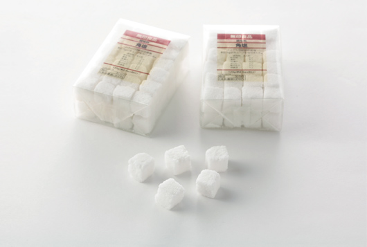 角塩は1個が小さじ1杯の半分(2.5cc)だから、はからなくたっていつも適量。見た目にもはっきりわかるので、ついつい取り過ぎになりがちな塩分もひかえられます。