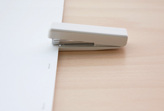 When you usually use a stapler, you can't seem to align the staple up exactly where you want it to be, which often leads to trouble. To solve this kind of problem, an indentation lined up with the corner of the paper has been set, making it easy for you to sink a staple in exactly the place you want it to go.