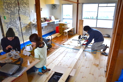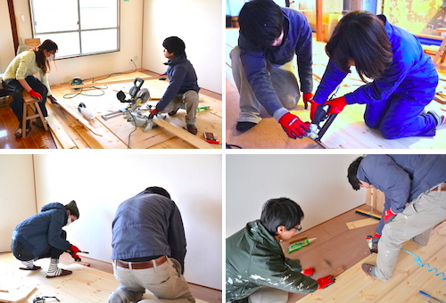 フローリング張りは3日かけて作業したのですが、その間はつねに友人たちが手伝いにきてくれ、フローリング張りを手伝ってくれたり、寝室の塗装を仕上げてくれたりしました。