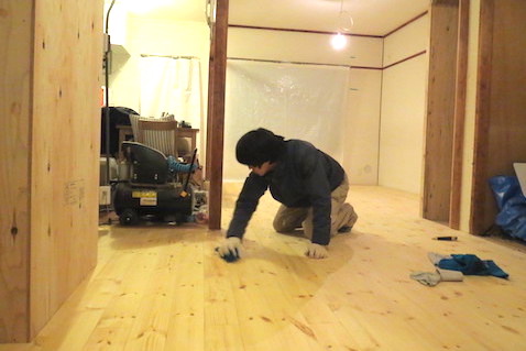 こんな調子で、とある土日の2日間にわたって友人知人の力を借りながら、なんとかフローリングの仕上げにこぎつけました。