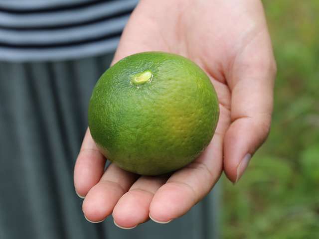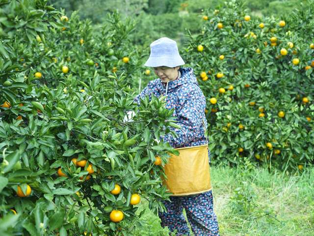 ある時、会員同士で話をしていると、栽培時に間引く目的で落としていた青みかんを使って、自分たちのお母さんたちがジュースを作ってくれていたという思い出話になりました。「あの懐かしい味を再現して商品化できないか?」そうして生まれたのが「青二彩(あおにさい)」ジュース。酸味と苦みのバランスが最もおいしい8月下旬の2週間に収穫した青みかんを丸ごと、皮ごと搾汁しています。