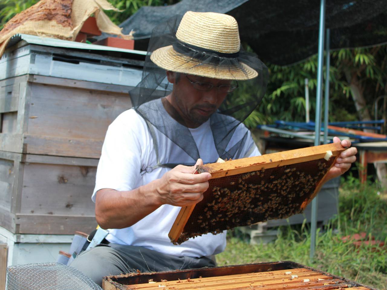 多くのはちみつを採蜜するためには、花の咲く地域へ次々とハチ箱を移動する方法が一般的ですが、桑原さんは年中同じ場所にハチ箱を設置して、ミツバチのバイオリズムに合わせて採蜜します。