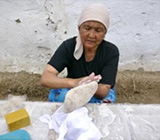 - 2. Shaping (A felt mold approximately 1.4 times the size needed is prepared; it is folded over twice both horizontally and vertically, moistened with soap water and held down)