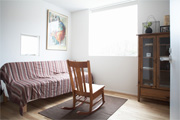一方、1階にはワインセラーと書庫、お酒を飲んでクルマで帰れない客人のためにゲストルームが設けられています。書庫を独立させたのはリビングに書棚を置きたくなかったから。「白い壁をできるだけ残したかった」とKさん。季節や時間で変化する光が窓から差し込み、白壁に影を映し出す様子も「窓の家」の楽しみの一つとKさんは言います。「一つ一つは良いモノなのに集まると違和感が生まれることがありますよね。だからモノはできるだけ置かないようにしています。置くなら相性の良い無印良品。もともと無印のファンでしたから。カタログから選べるので時間がない私には重宝しています」。来年は自宅を使った料理教室の計画もあるそうです。