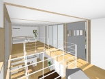 LDKを広く保ちつつ、集中して音楽鑑賞や映画鑑賞ができるような工夫があります。外壁は白いサイディングです。1階のLDKを広くするため2階に洗面所とお風呂があります。開放感のあるスケルトン階段です。