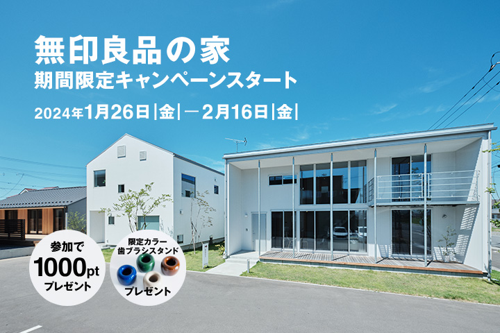 1月26日(金)より、全国のモデルハウスで期間限定キャンペーンがスタート。この機会に実物の無印良品の家を見て、あなたにぴったりの家を探しませんか?