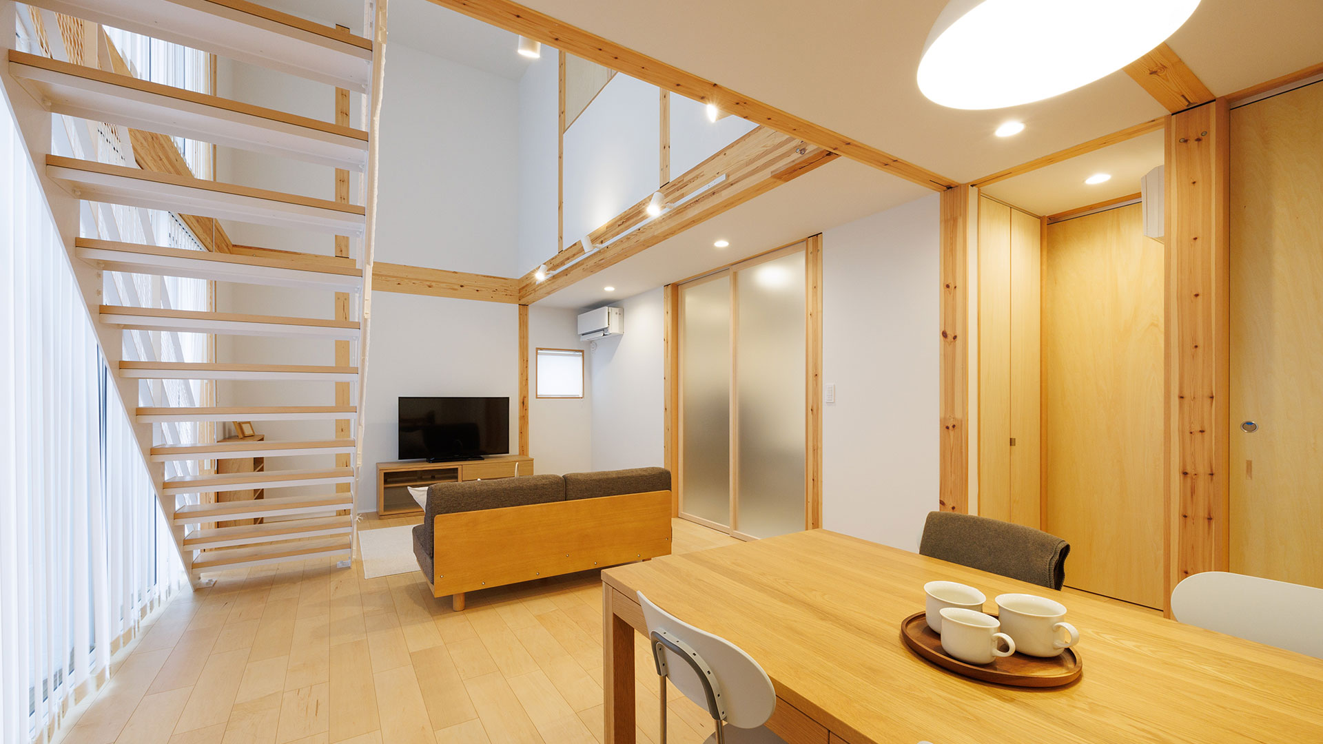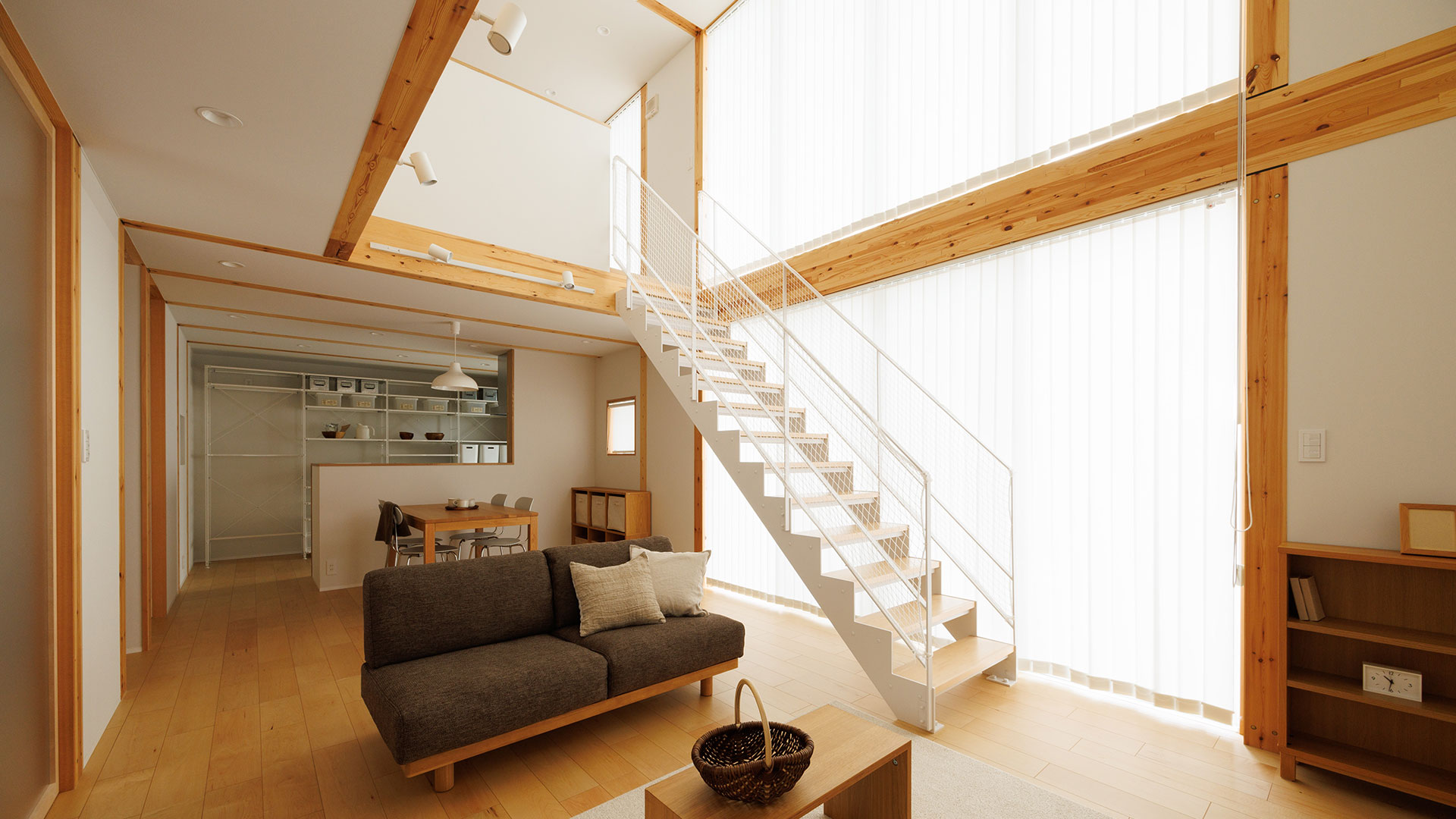 無印良品の家には、決まった間取りはありません。全ての人の暮らしやライフステージの変化に合わせて、10年後も、30年後も間取りを自在に変化させることで、理想の暮らしを実現させます。また、快適・安全に、永く住める家づくりのために、さまざまな研究結果や技術を取り入れて、強く確かな品質をお約束しています。