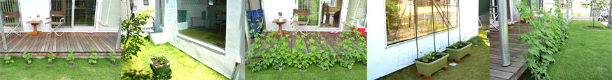 見ためにも涼やかな緑のシェード、この夏、モデルハウスでも育てています。
