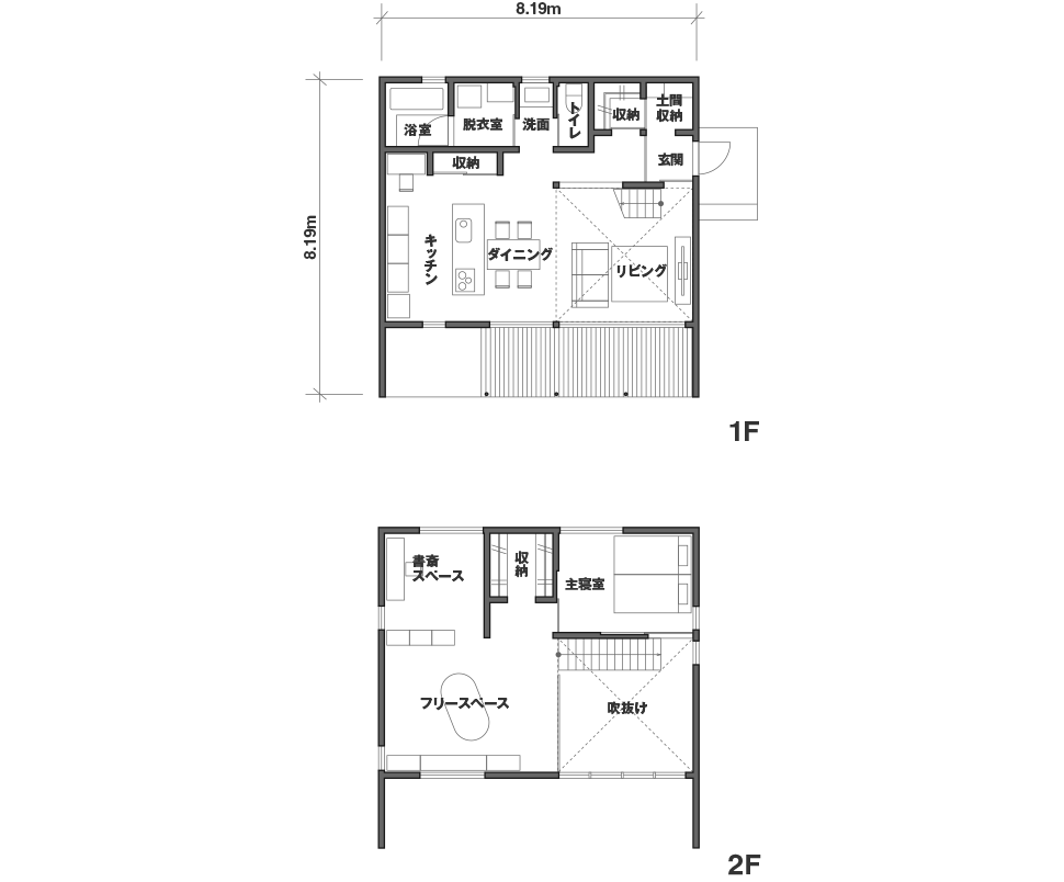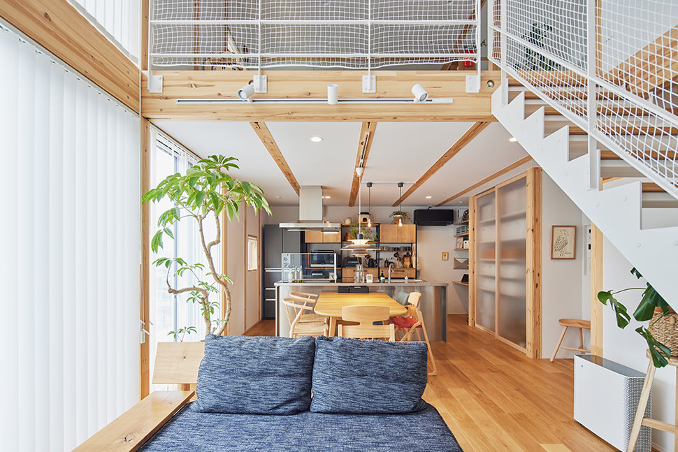 吹き抜けの大空間で子育て|木の家