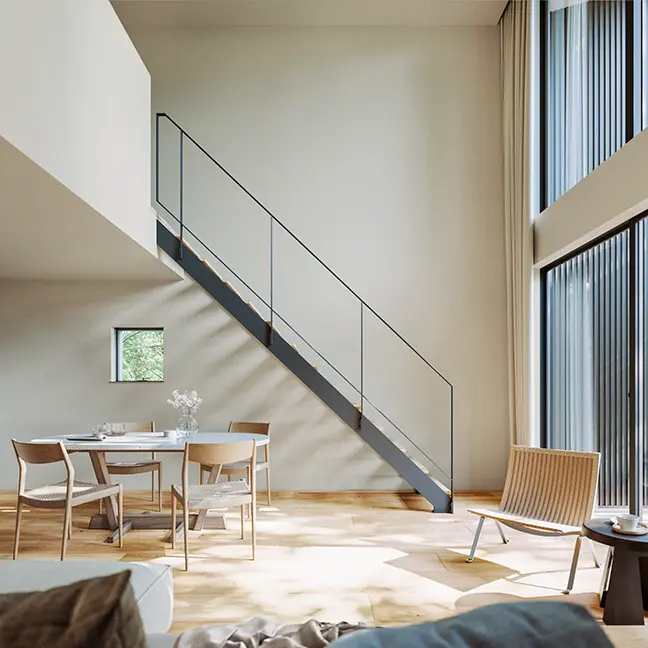 ささら(側板)をストレート形状とし、表面にボルトの出ない仕様とすることですっきりとした印象に。