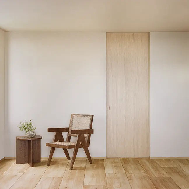建具自体の素材にこだわることはもちろん、ドアの枠も目立たないものにすることで、より一層壁面の美しさが際立ちます。