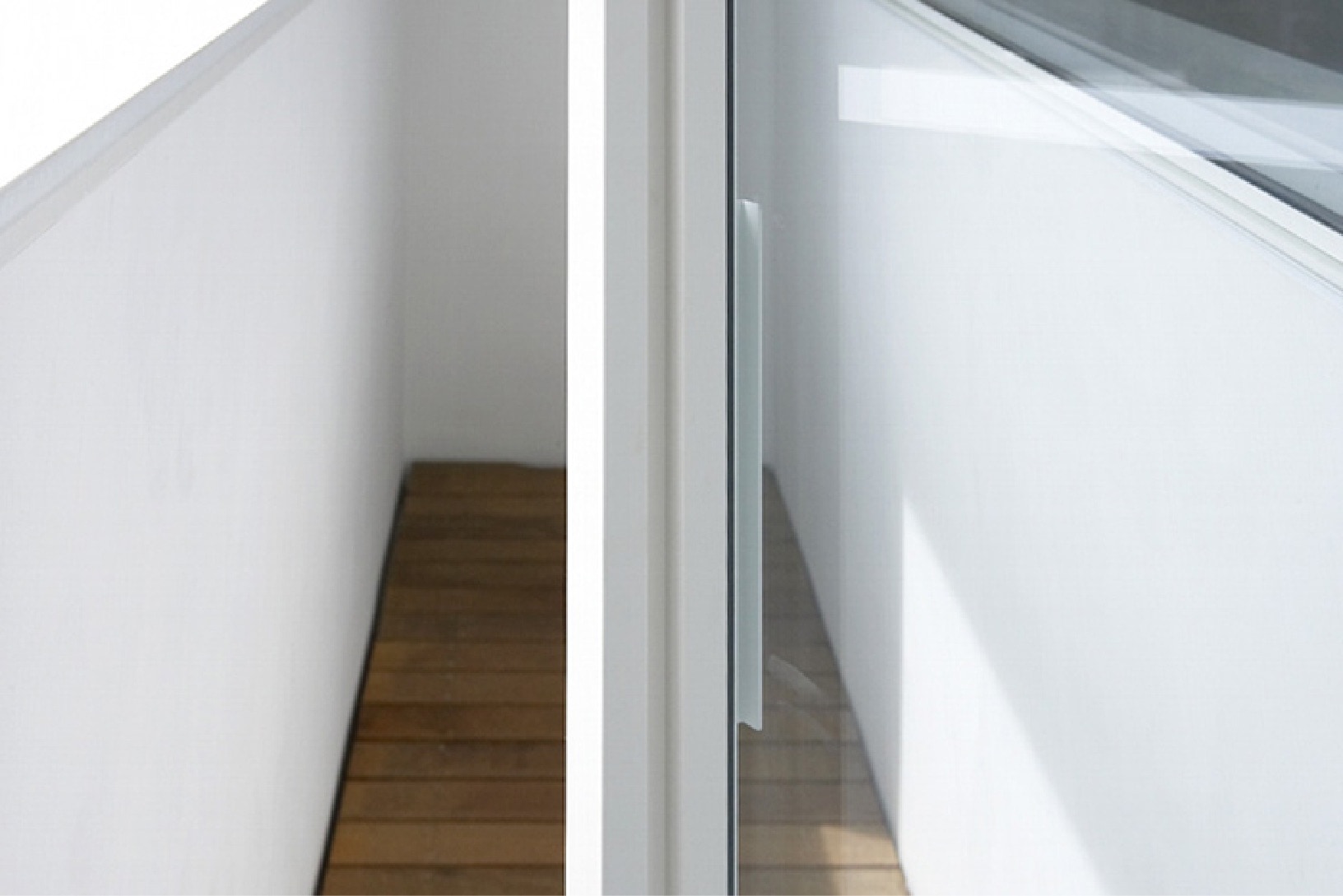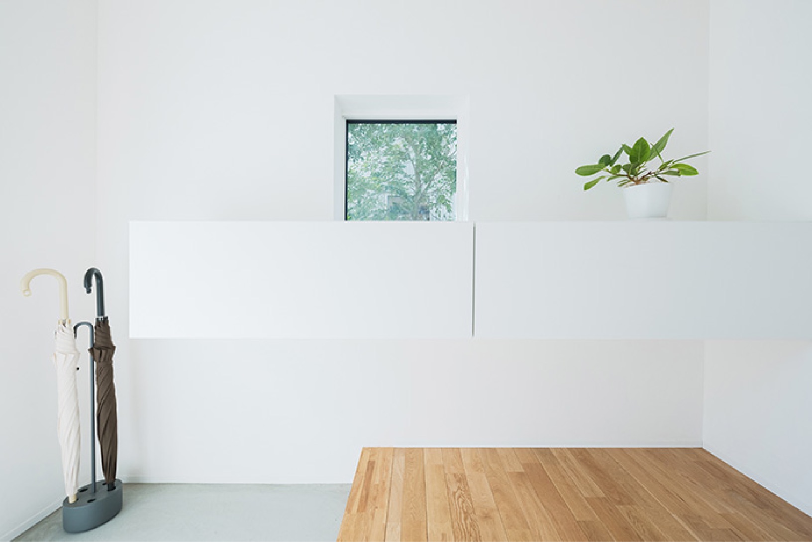私たちは、住まいのなかに取り付けられた同種類のパーツの、質感やデザインの共通項を、無意識のうちに関連づけてとらえ、日常生活を送っています。そこに調和があると、整ったハーモニーを持つ心地よい環境と感じるのです。「窓の家」はディティールの整合性にも心を配りました。レバーハンドル、ペーパーホルダーのデザインや質感をそろえてしつらえたのも、そうした配慮から。試作を通常の倍以上に重ね、完成したフォルムには普遍性が宿り、ドアノブを握るとすっと指が吸い付くような自然な感触が感じられます。白い壁、金物類、ポスト、キッチン、水まわり。「窓の家」は意識しないで触れるものにこそ、ありそうでなかった「これでいい」を追い求めました。