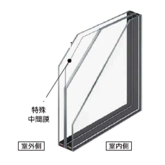 ガラス部は空気層のあるトリプルガラス構造で、開口部からの熱気・冷気の侵入をブロック。オプション設定で、防犯合わせガラスもご用意しています。