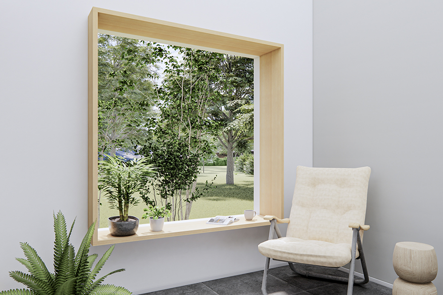 お気に入りの窓は、窓枠を延長することで用途の幅を広げることも可能です。例えばインテリアを飾ったり、本棚としたり、活用の幅がさらに広がります。