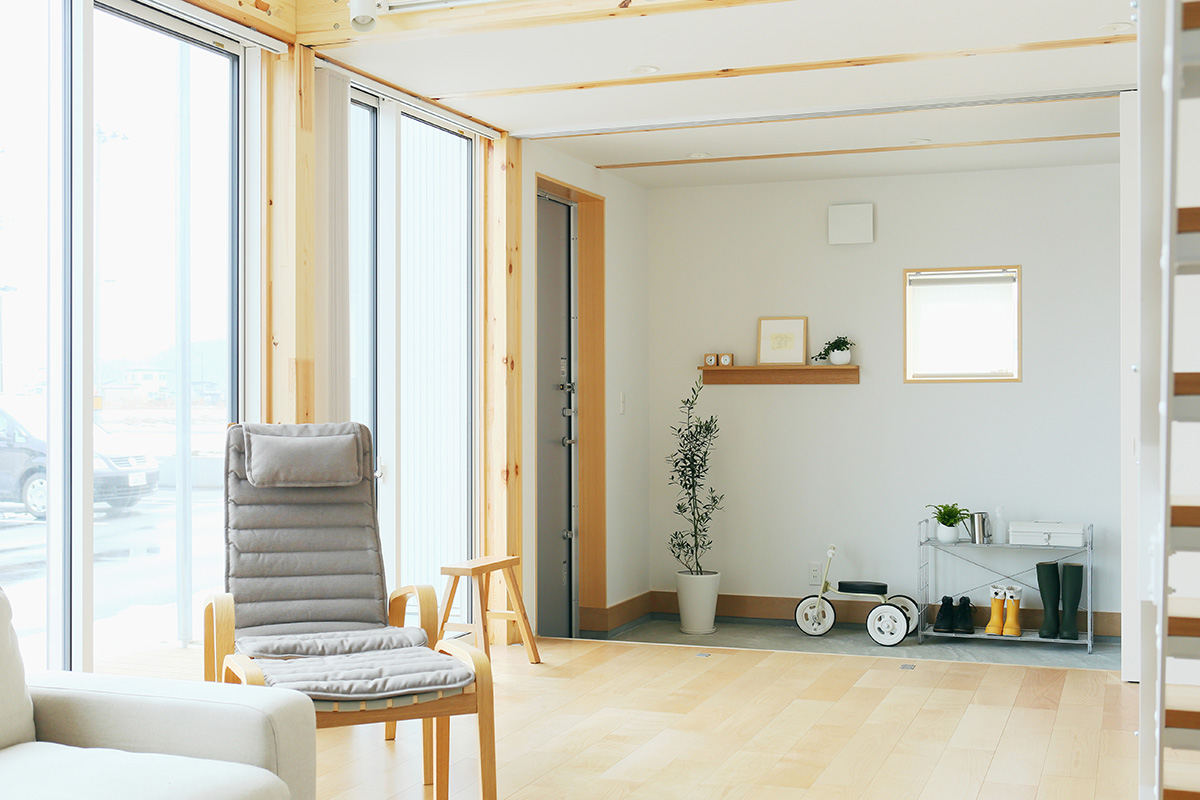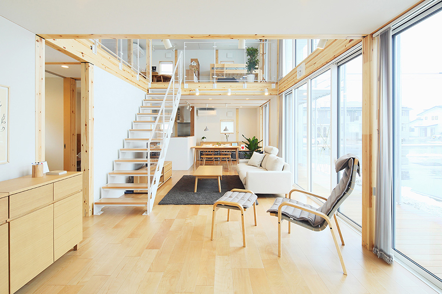 無印良品の家 青森店「木の家」モデルハウスは、冬は暖かく、夏は涼しい、内外ダブル断熱に加え、トリプルガラスを標準装備し、優れた耐震性能(SE構法)によりご家族の安心安全をお守りします。