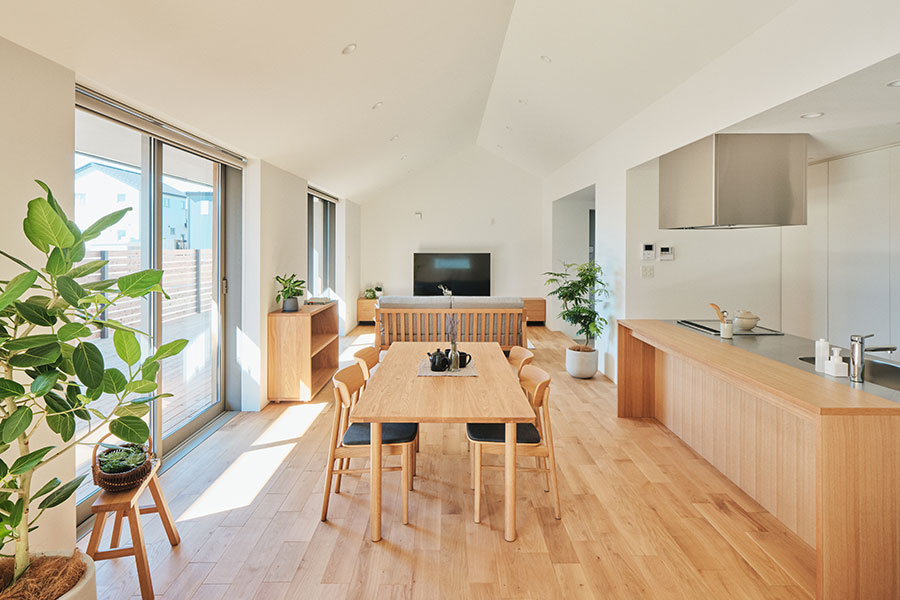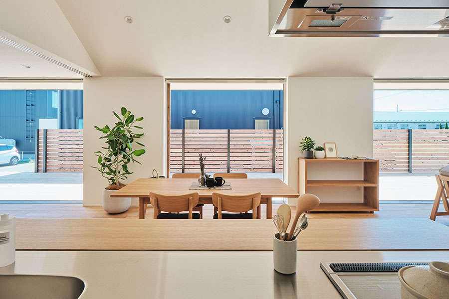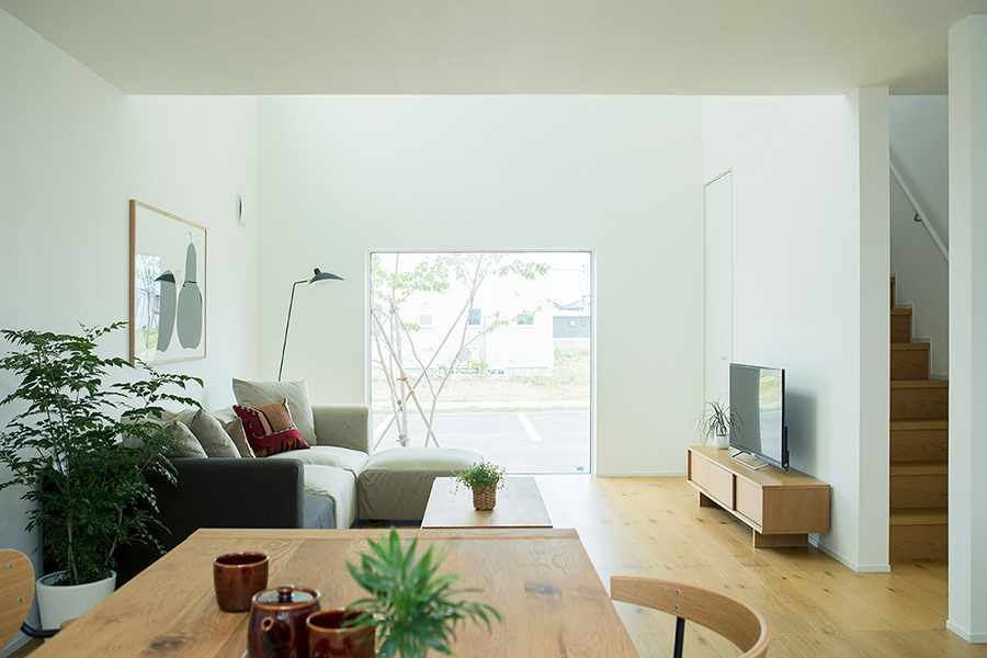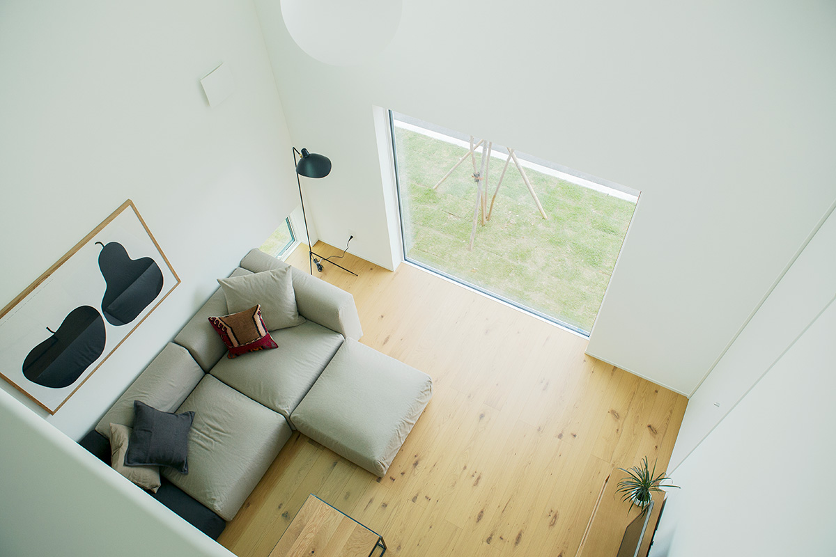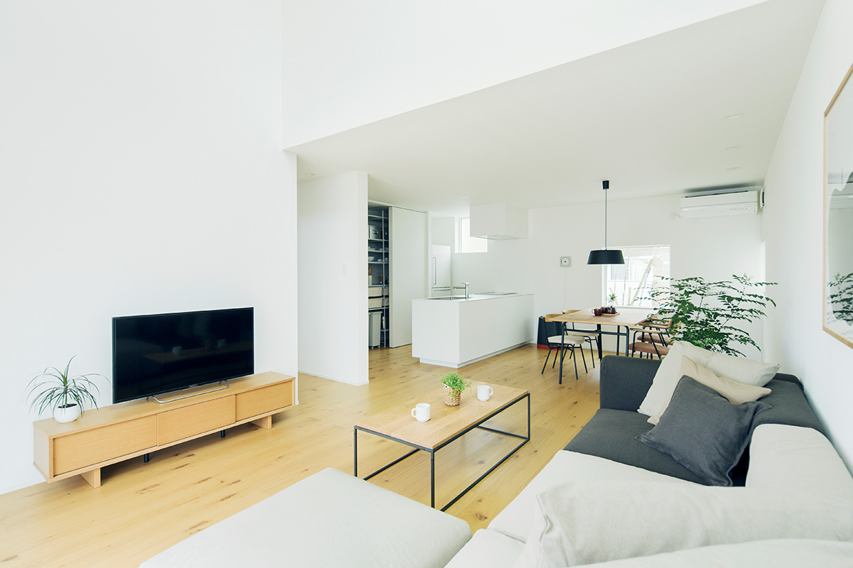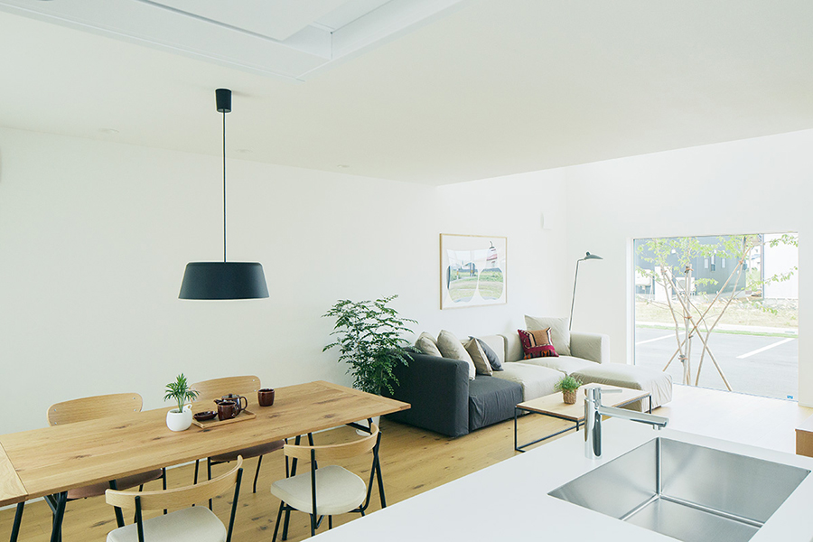 「永く使える、変えられる」をコンセプトに、吹抜けを中心とした間仕切りがない一室空間、リビング南面の窓が周囲の環境に大きく開かれた箱型の住まいです。暮らし方によって柔軟に間取りを変えられる、今も、そして30年後もちょうどいい家がここにあります。
