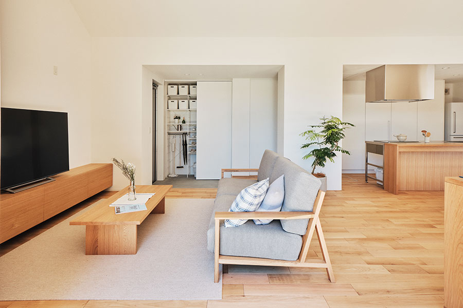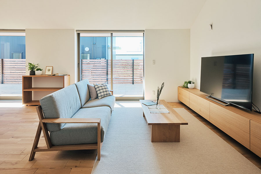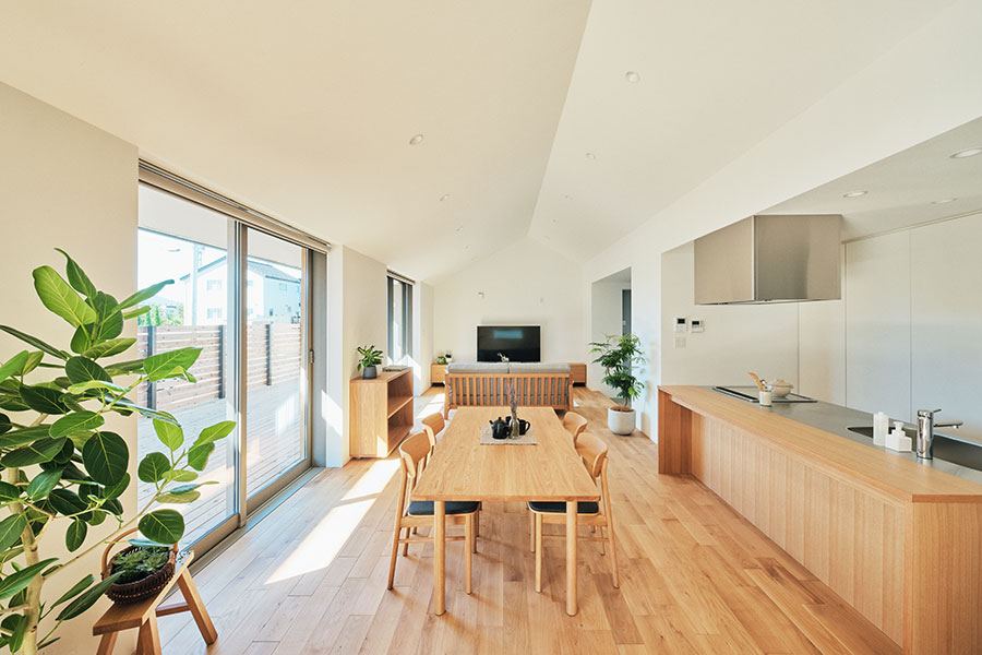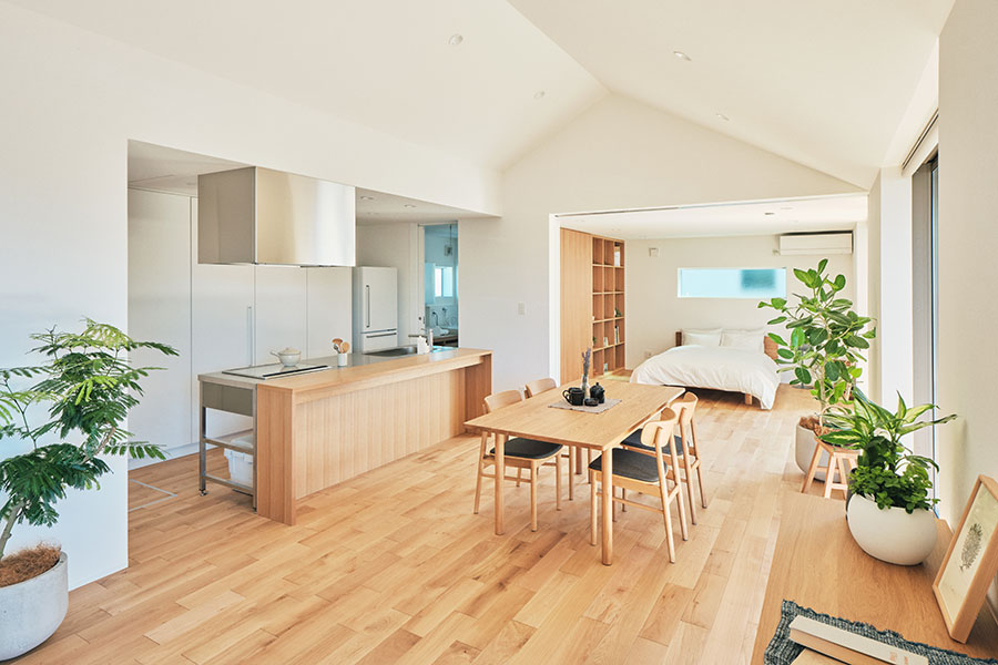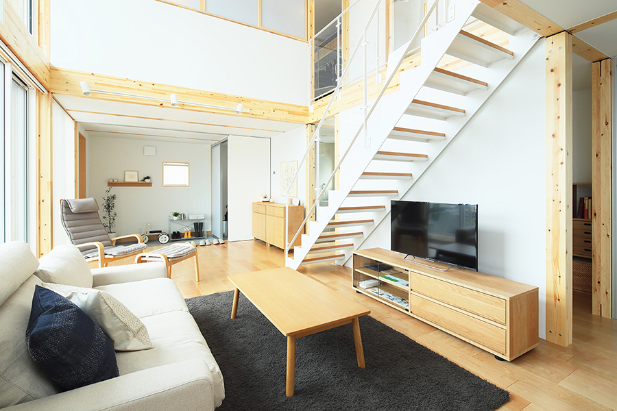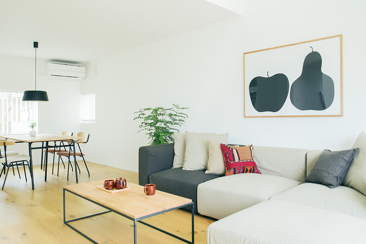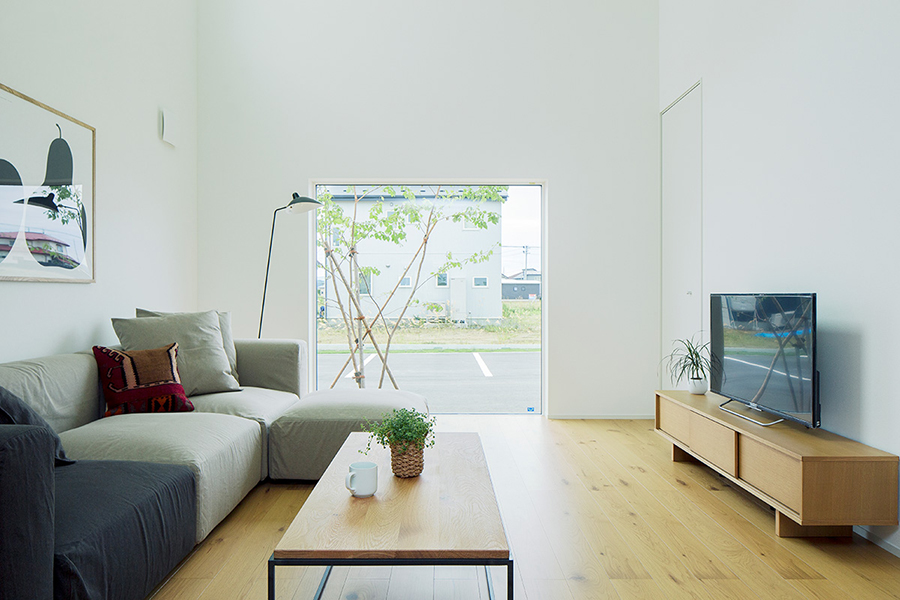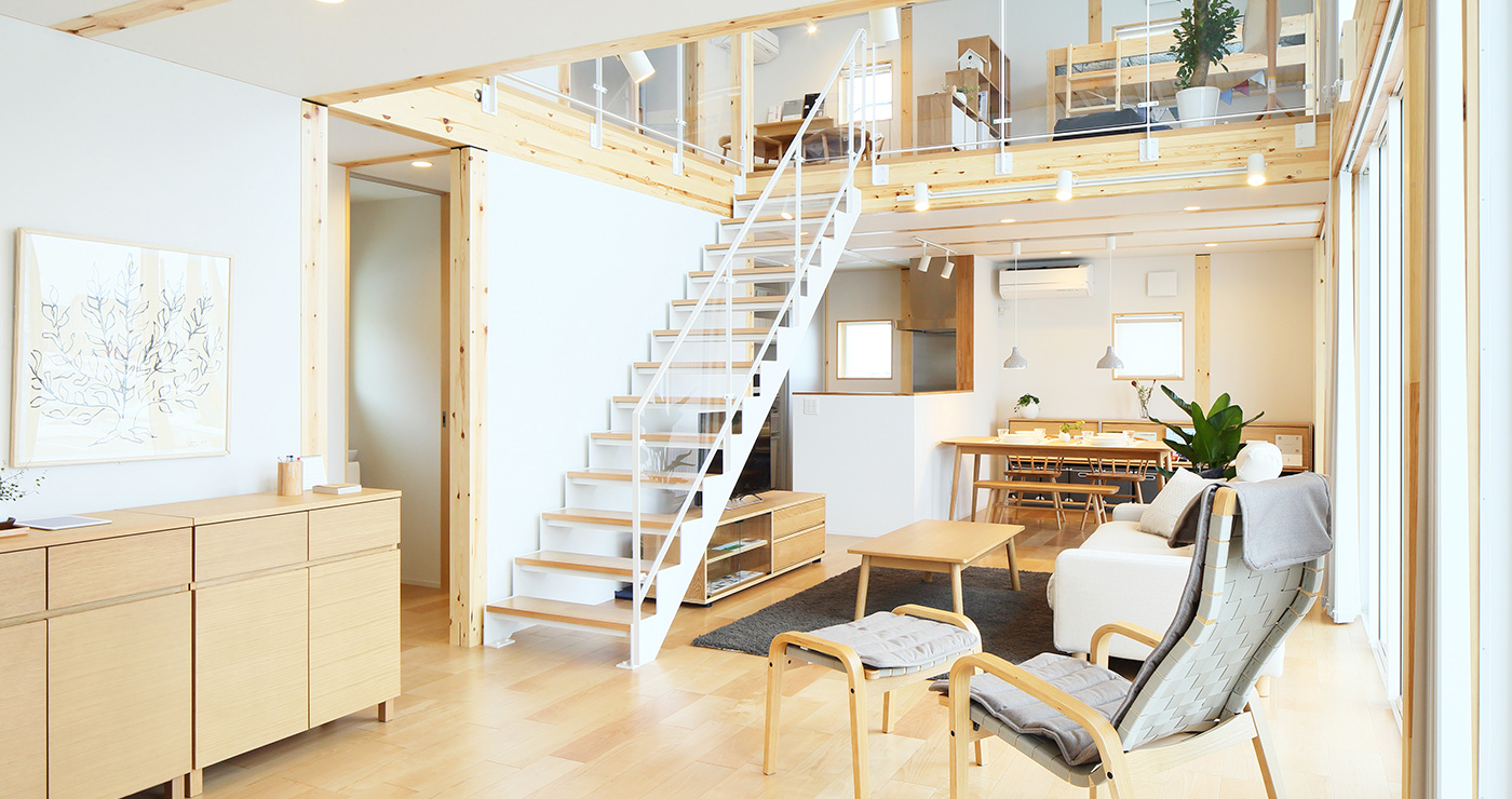 「永く使える、変えられる」をコンセプトに、吹抜けを中心とした間仕切りがない一室空間、リビング南面の窓が周囲の環境に大きく開かれた箱型の住まいです。暮らし方によって柔軟に間取りを変えられる、今も、そして30年後もちょうどいい家がここにあります。