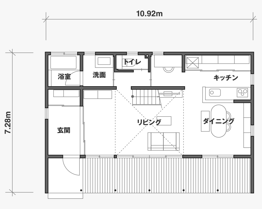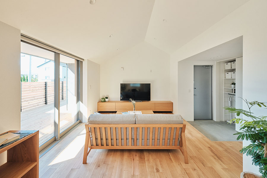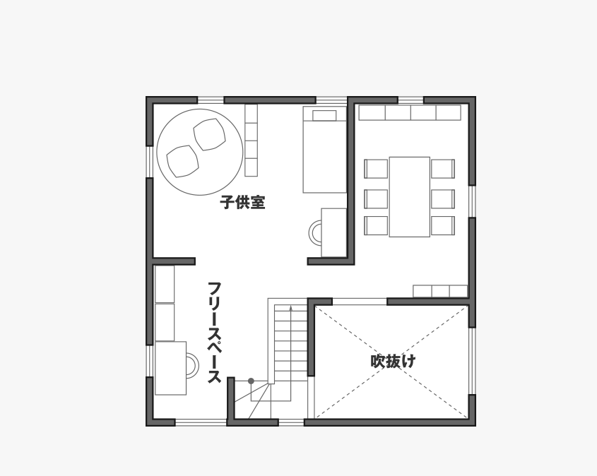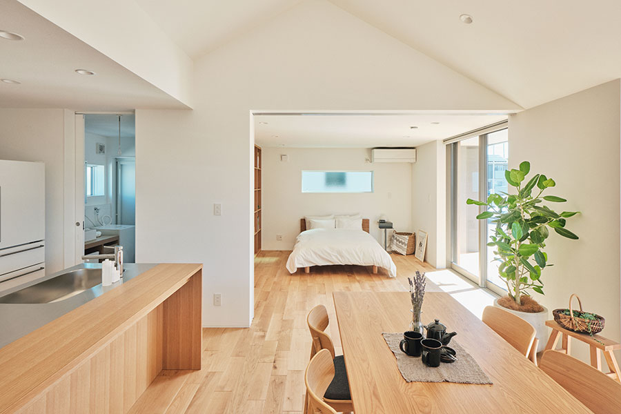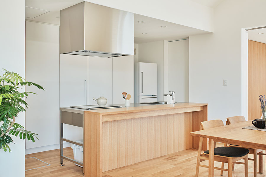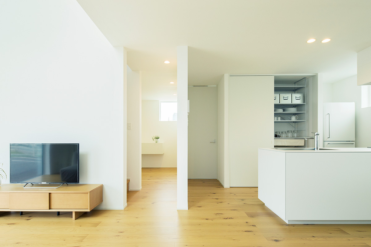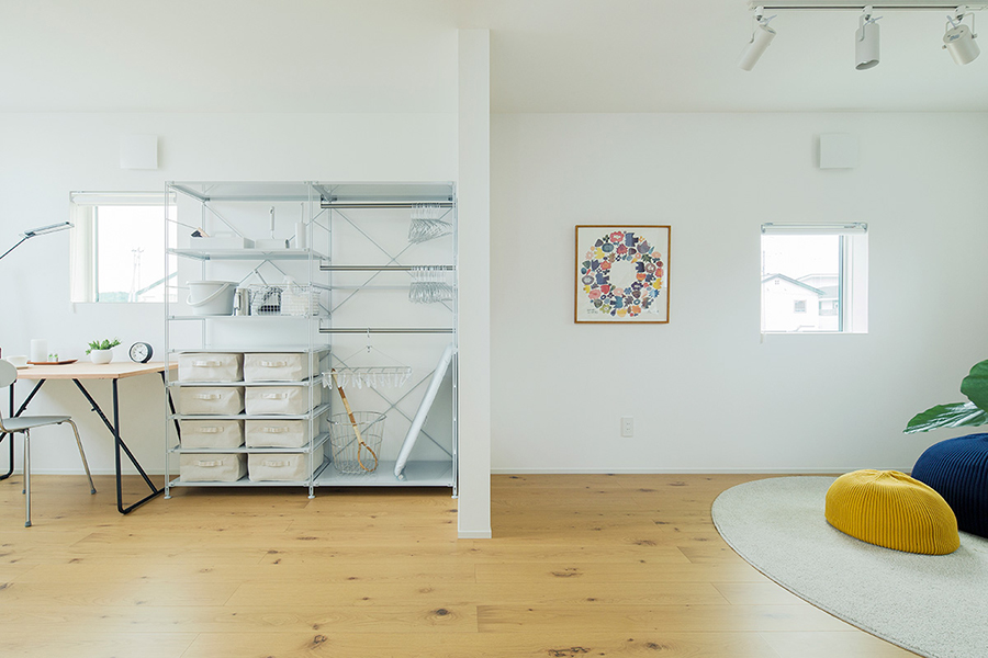 「永く使える、変えられる」をコンセプトに、吹抜けを中心とした間仕切りがない一室空間、リビング南面の窓が周囲の環境に大きく開かれた箱型の住まいです。暮らし方によって柔軟に間取りを変えられる、今も、そして30年後もちょうどいい家がここにあります。