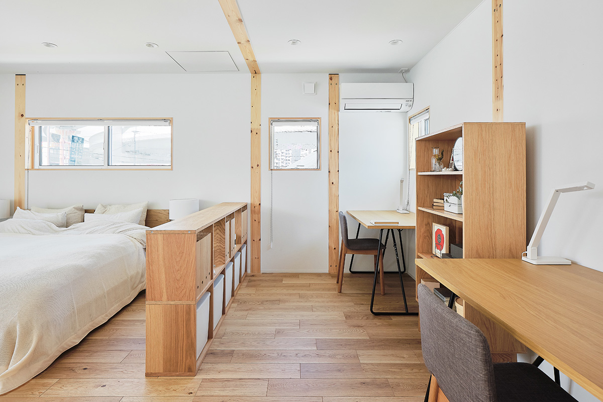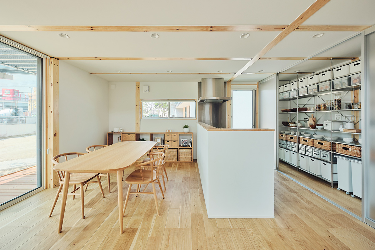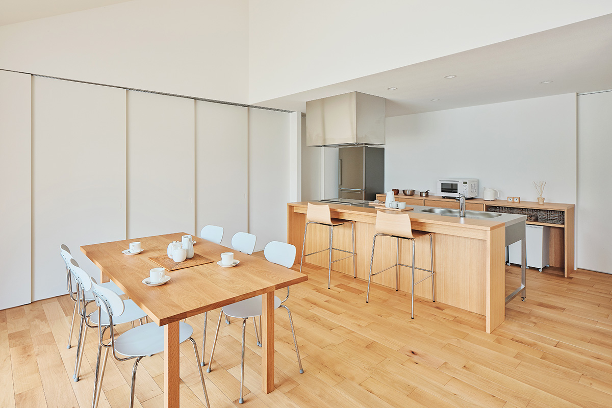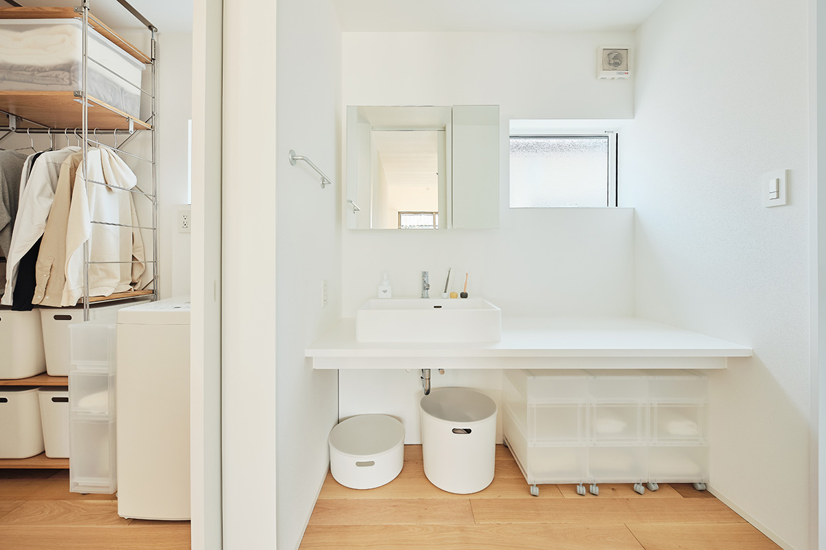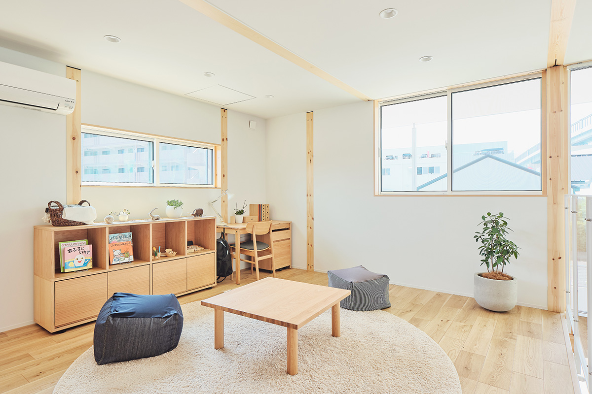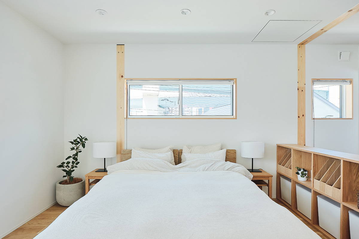 6間×4間(10.92m×7.28m)のモデルハウスです。外観はホワイト色でシンプル、室内は木の香り漂う8帖の吹抜けと開放的な空間で、機能的なデザインや仕様は、細部まで無印良品のこだわりを詰め込みました。