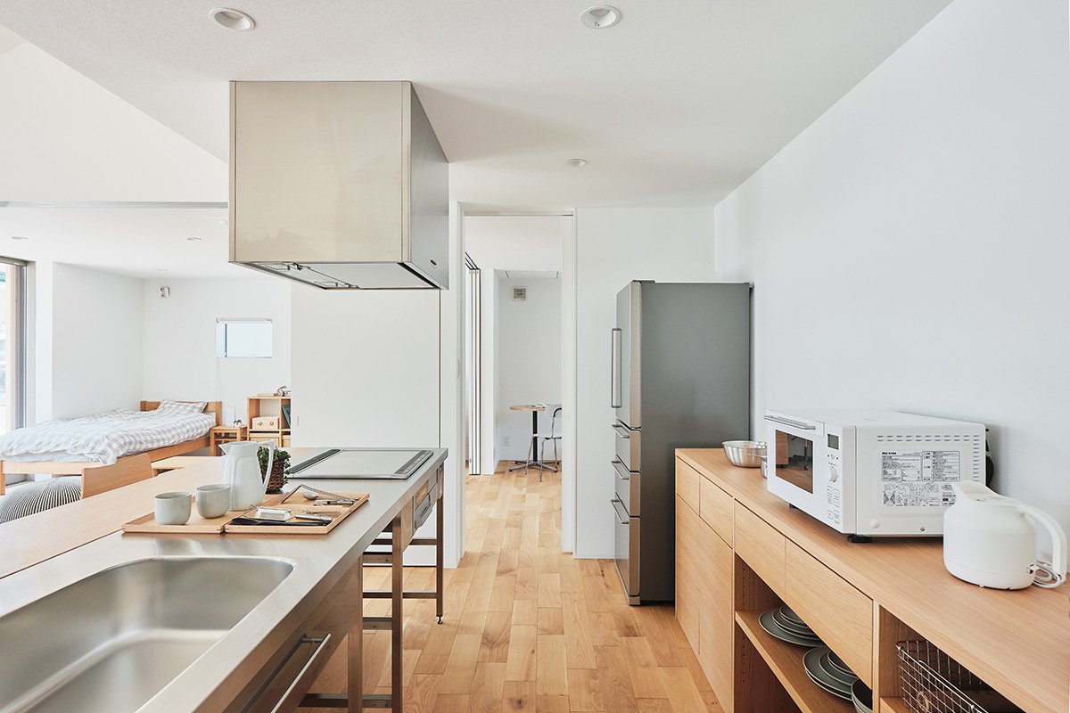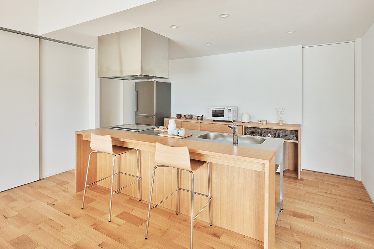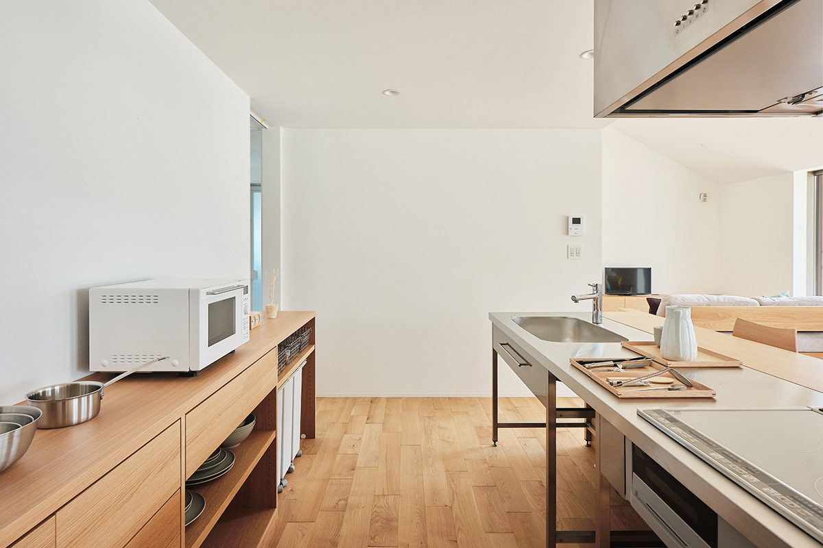 - ステンレス製オリジナル壁付キッチン・IHクッキングヒーター