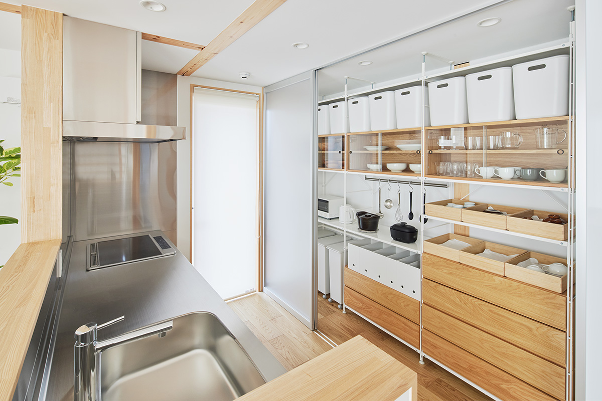 - ステンレス製オリジナル壁付キッチン・IHクッキングヒーター