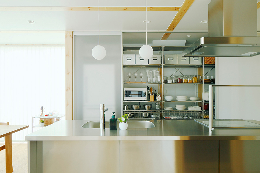 - ステンレス製オリジナル壁付キッチン・IHクッキングヒーター