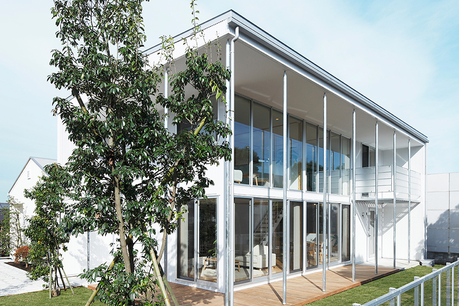 東・南面のウッドデッキが、室内から見た景色をさらに開放的に演出してくれます。玄関の近くには築山を設け、お子様が楽しめるような外構計画となっております。