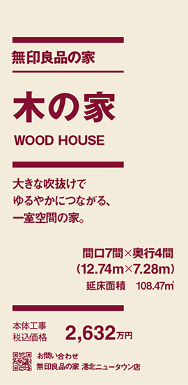 無印良品の家 港北ニュータウン店「木の家:モデルハウスは、横浜市で一番平均年齢が若く、近隣には大規模商業施設が数多く点在する中自然と緑の豊かな街、都筑区に建っています。