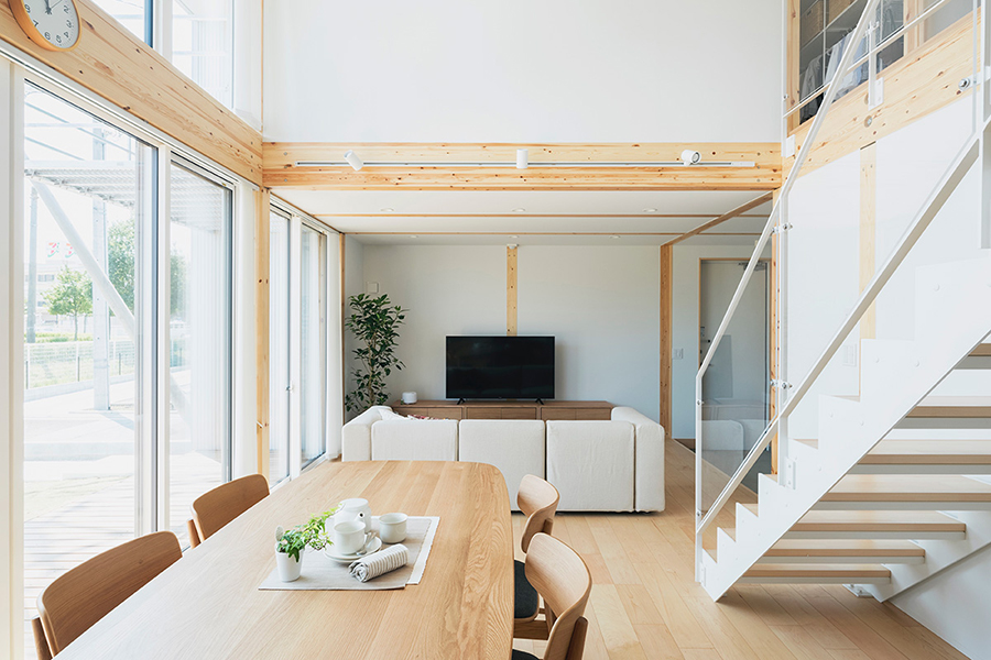 「永く使える、変えられる」がコンセプト。永く使っていただくため、耐震性、耐久性に優れた構造はもちろんですが、暮らしの変化にも対応できる造り方は、一見の価値ありです。大きな窓や吹抜けで、明るく開放的な空間を、ぜひお確かめください。