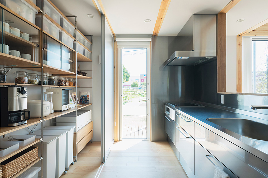 - ステンレス製オリジナル壁付キッチン・IHクッキングヒーター