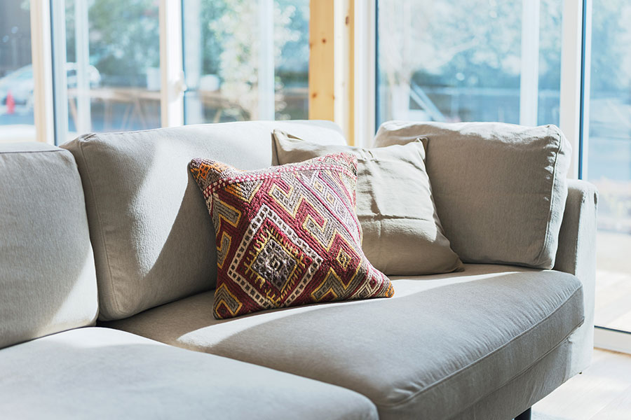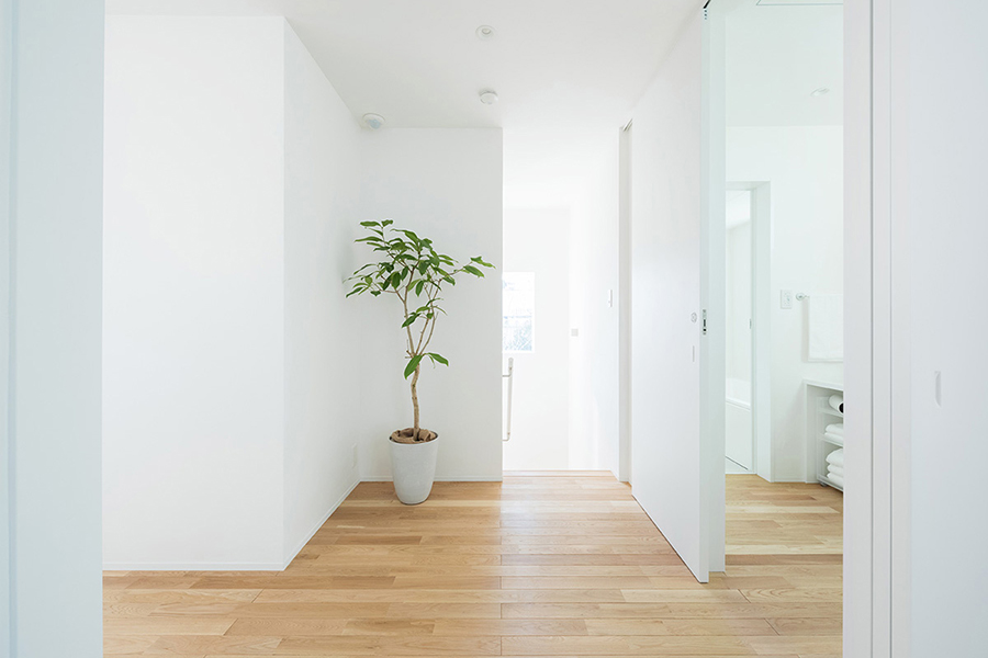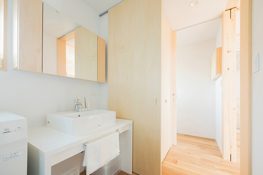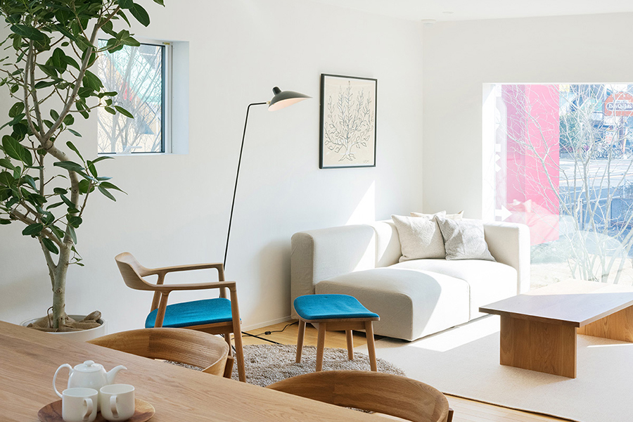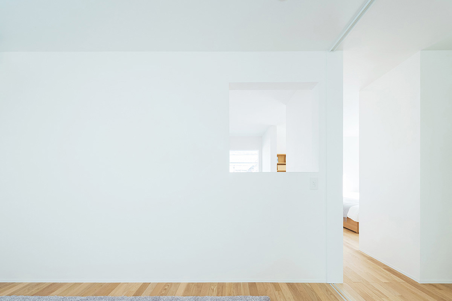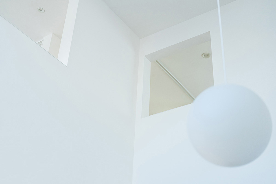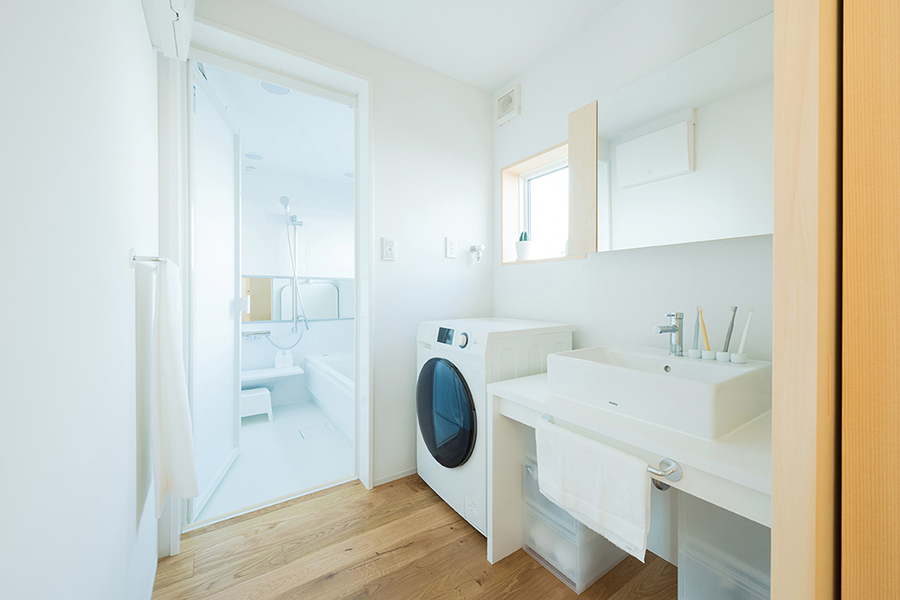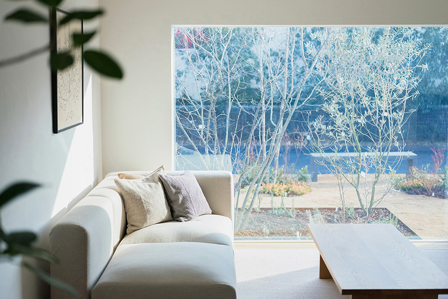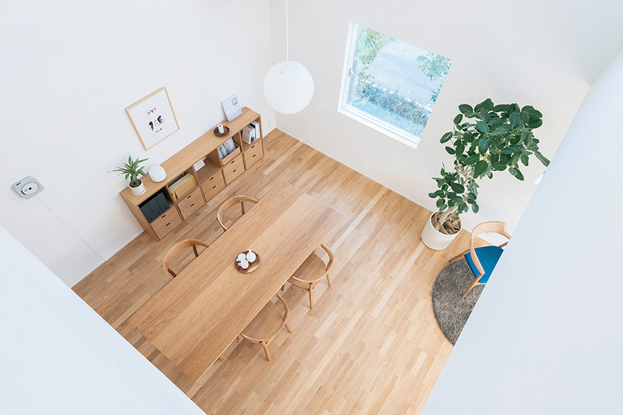 子供が描くような三角屋根に四角い窓。窓の家は、誰もが幼い頃に思い描いた家のかたちをしています。青空や緑が窓によって絵のように切り取られ、室内に美しい景色を取り込んでくれます。内装は珪藻土仕上げの白い壁とナラ無垢材を使用したフローリングを採用しており、空間全体が柔らかく心地の良い空間に仕上がっております。仕上げが美しい窓の家をぜひ体感ください。