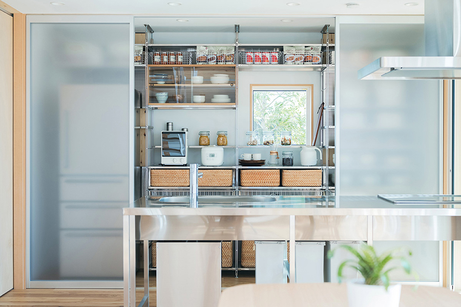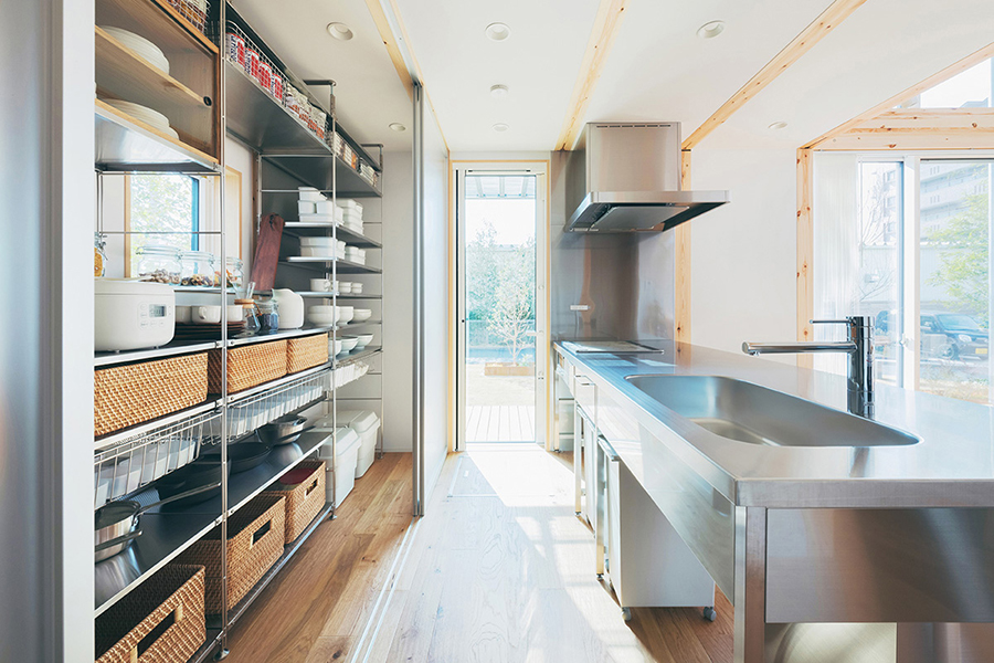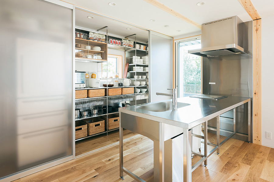 - ステンレス製オリジナル壁付キッチン・IHクッキングヒーター