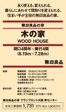 無印良品の家 グランフロント大阪では、快適・安全に、永く住める家づくりの取組を、見て触って体感いただくことができます。家づくりに関するご相談窓口として、さらには住まいや暮らしに関する情報を提供するイベントスペースとして、さまざまな機能をもつ新しいスタイルの情報発信地です。