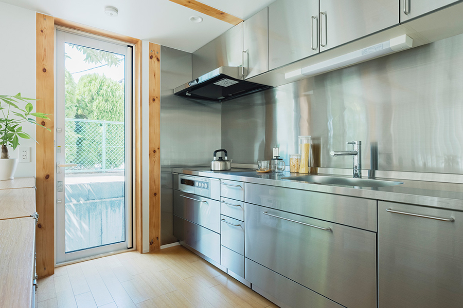 - ステンレス製オリジナル壁付キッチン・IHクッキングヒーター
