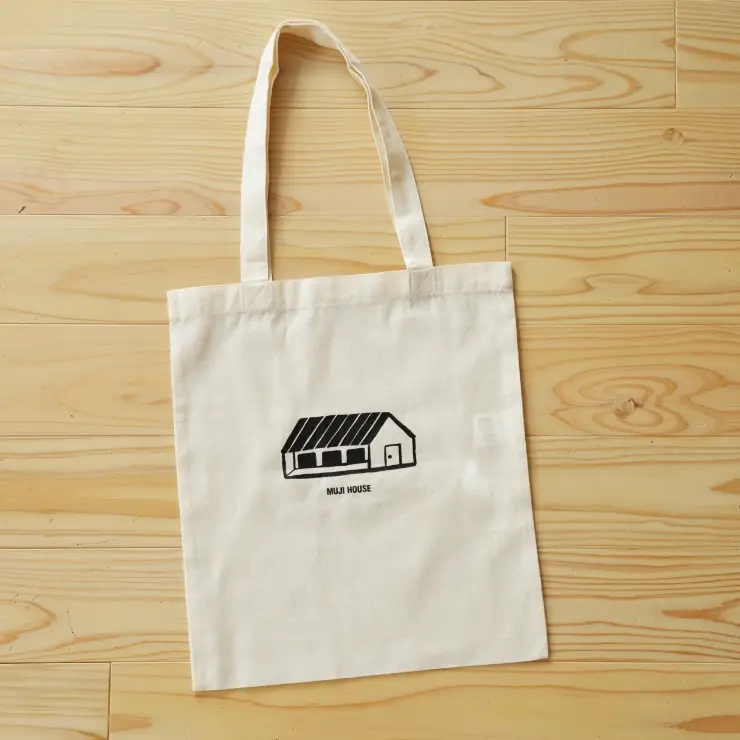 無印良品の人気アイテム、マイバッグ(A4)に陽の家をプリントしたオリジナルアイテム。小さくたたんで持ち運ぶのに便利な布製のトートバッグです。