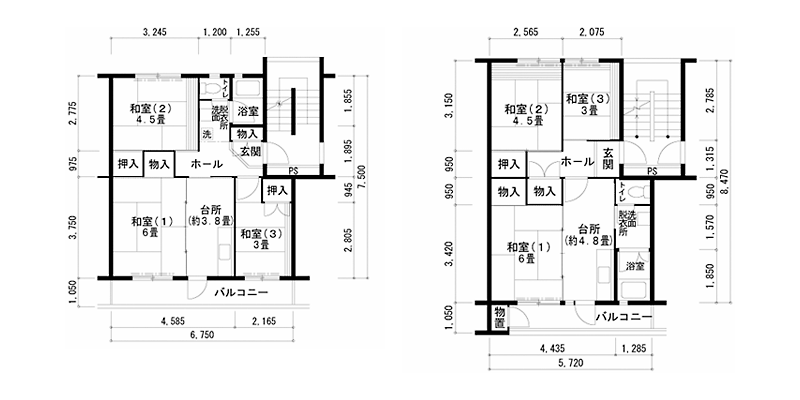 それはこの時代の最も典型的な住戸タイプです。その素材の良さは十分にあるものの、お風呂が小さかったり、洗濯機置き場の位置がわるかったり、設備が古くなっています。