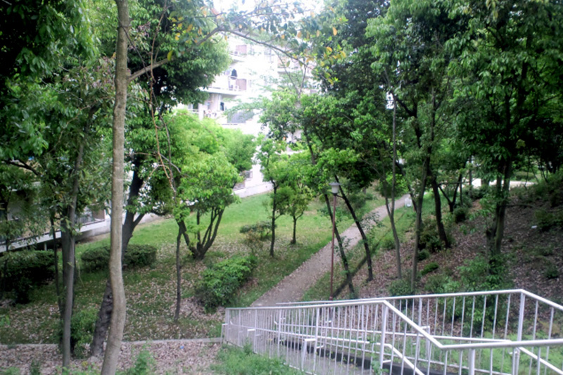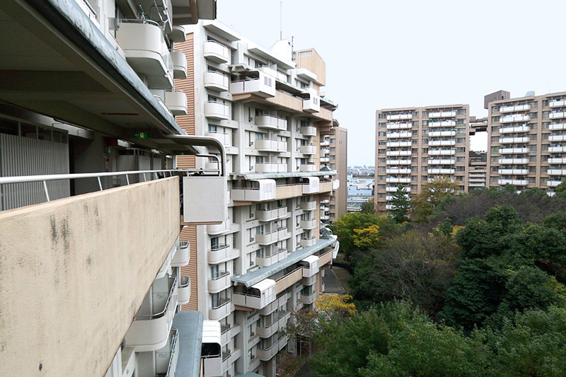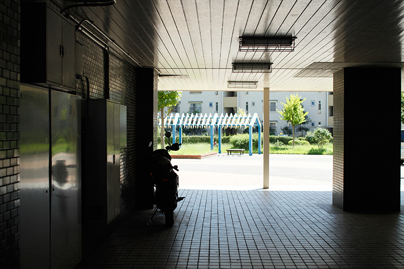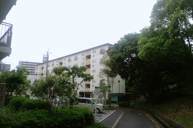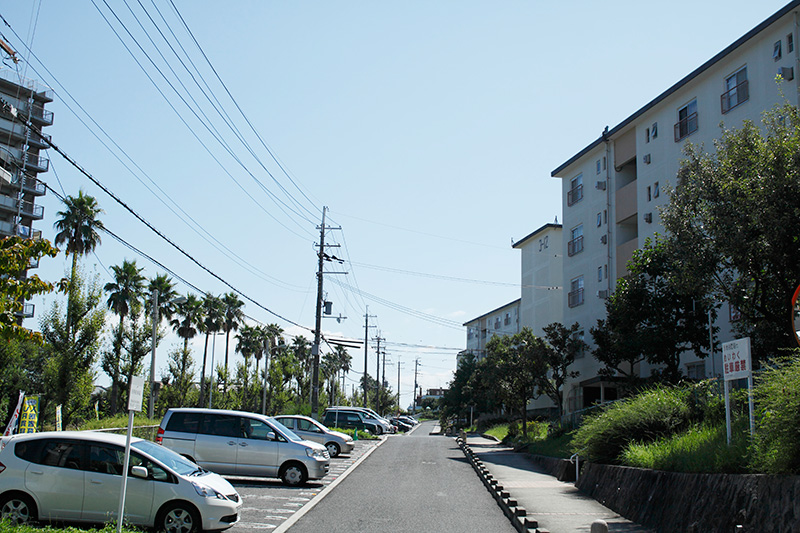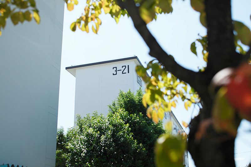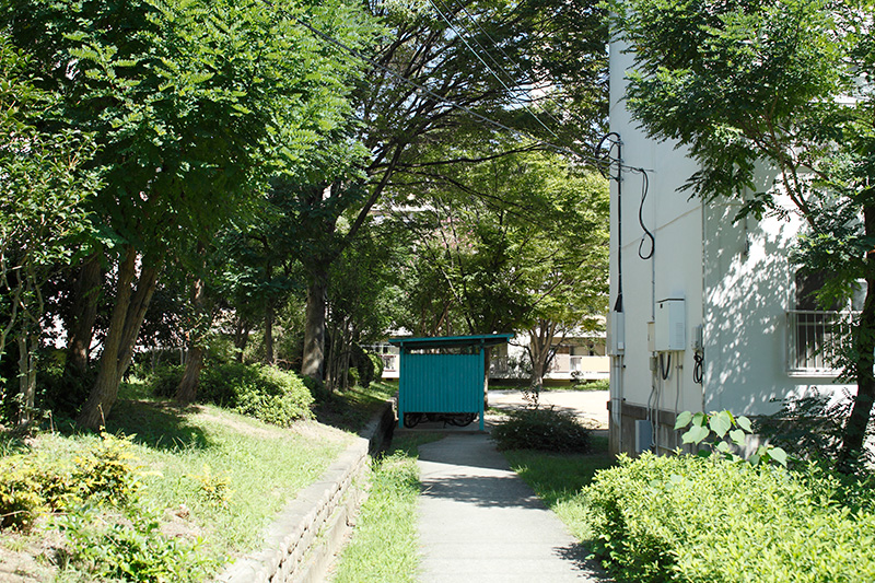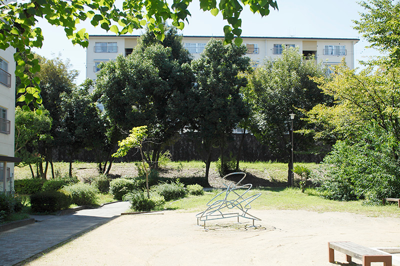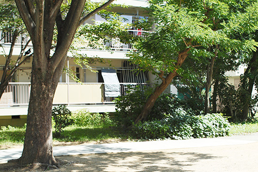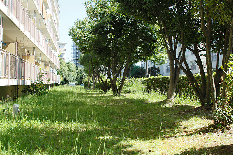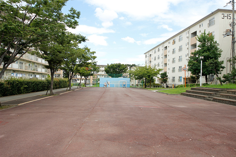 団地の先には小学校があり、学校帰りの小学生が団地の中をよく駆け回って遊んでいます。子どもの遊び声が響く、のどかな団地です。