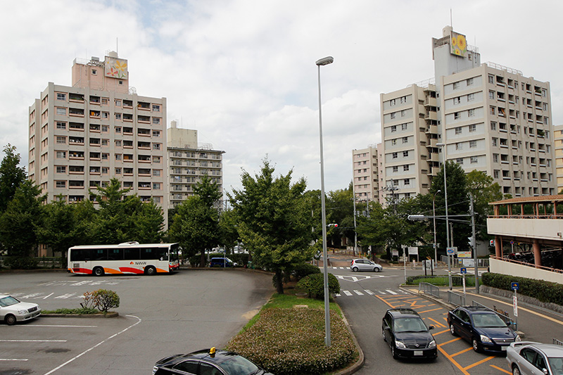 駅の反対側、南側の商業エリアを抜け、緩やかな坂道の上に建っているのが、今回のMUJI×UR団地リノベーションプロジェクトの舞台のひとつとなる「泉北茶山台二丁団地」です。