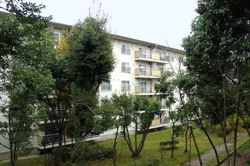 今回のMUJI×UR団地リノベーションプロジェクトでは、泉北茶山台二丁団地の中でも、団地のスタンダードともいえる階段室型の住棟の1室をリノベーションします。