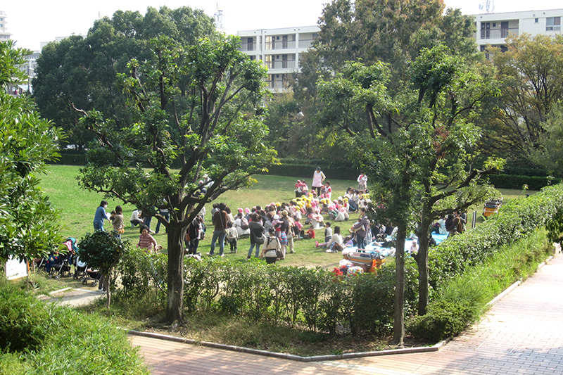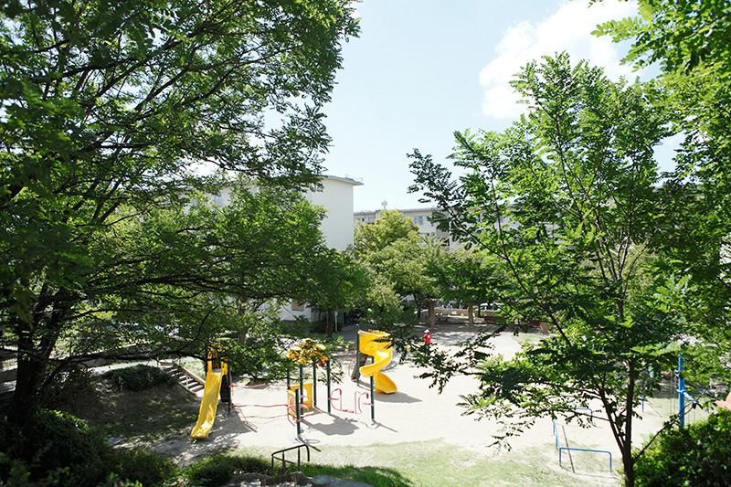 団地内にいくつもある公園は、陽の光をたっぷり受けとめて、明るくあたたか。そして団地に隣接する市民公園も、暮らしのもう一つの舞台になります。