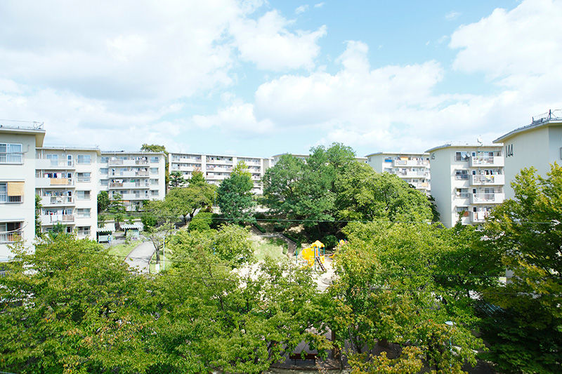 今回ご紹介する「東豊中第2団地」のイチオシは、ずばり、そのロケーションのすばらしさ!千里丘陵の南西向きの斜面に建てられており、文字通り日当たり良好な、絶好の環境の中で暮らせるのです。