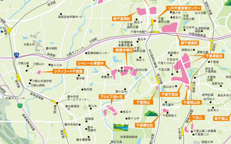 さて、もちろん、クルマをお持ちのご家族も楽しみはたくさん。地下鉄と並行して走る自動車専用道路の新御堂筋の出入口は、桃山台駅の真横! 千里と大阪中心部のアクセスは、クルマでも快適です。