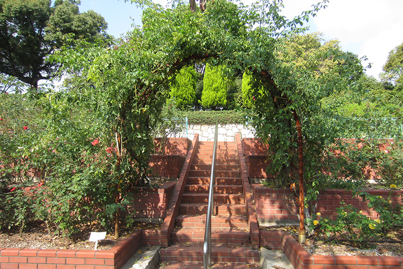 バラ園。豊中市の市花であるバラが60種類以上も育つバラ園では、足を止めて香りを楽しむ市民もよく見られ、まさに憩いの場になっています。