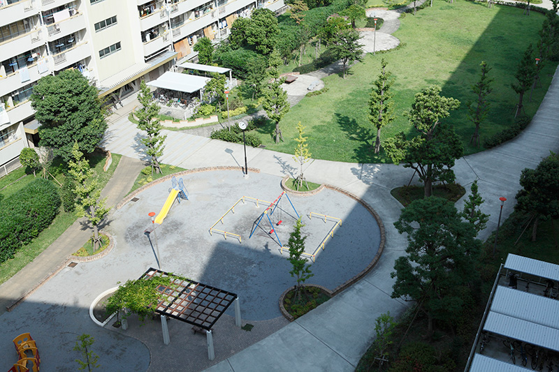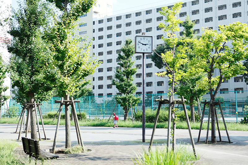 高島平団地の特徴といえば、なんといっても高層棟が整列している様子。それまでは、団地といえば5階建ての中層棟がメインでしたが、建設当時のノウハウと技術的な積み重ねが高島平団地に結集し、11~14階の高層団地が生まれることになりました。