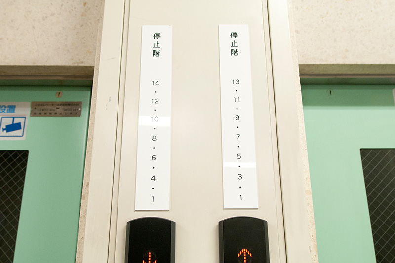 エレベーターは混雑を防止するため、ステップ式になっています。奇数階に住む方、偶数階に住む方で乗るエレベーターが分かれているのが特徴です。