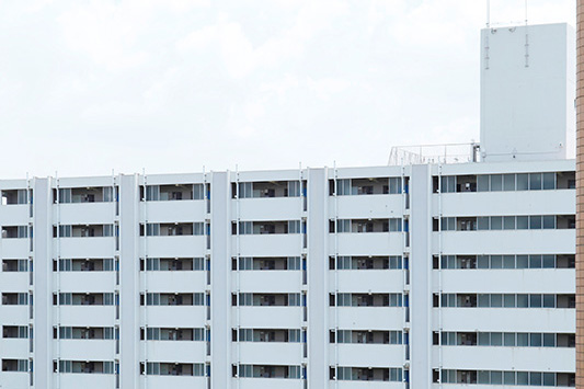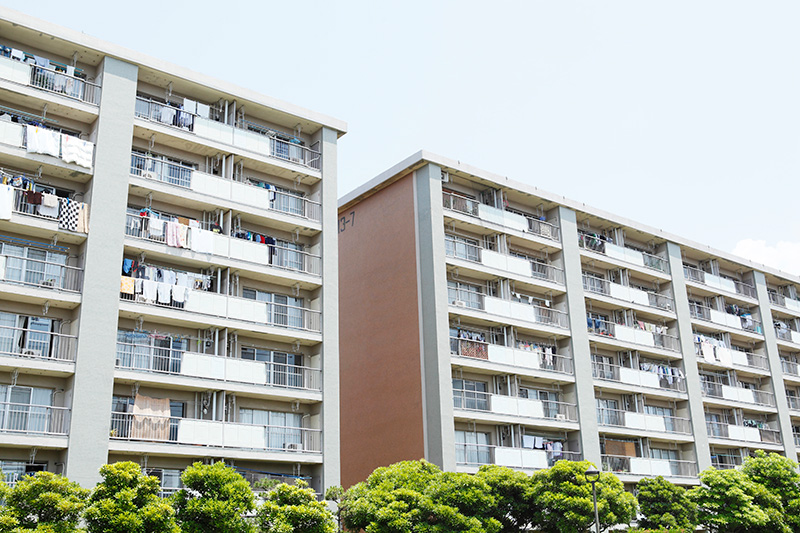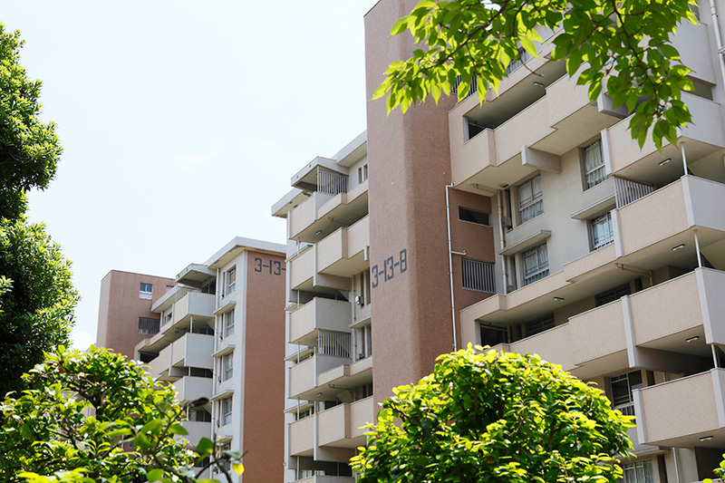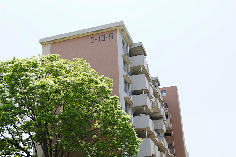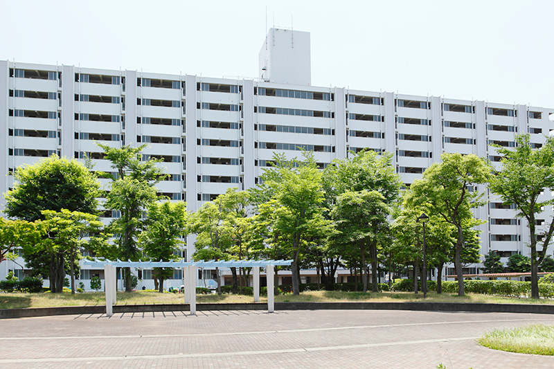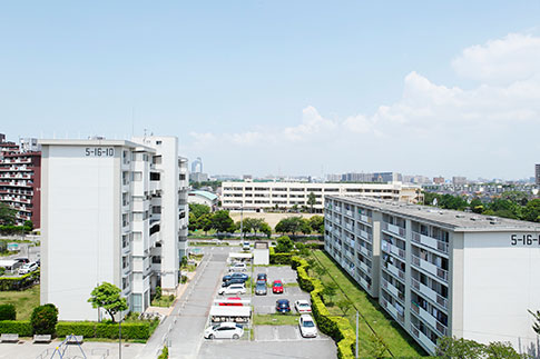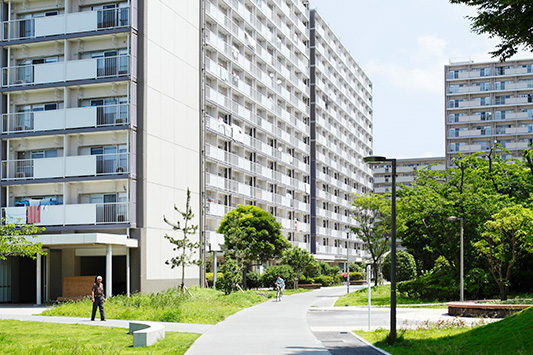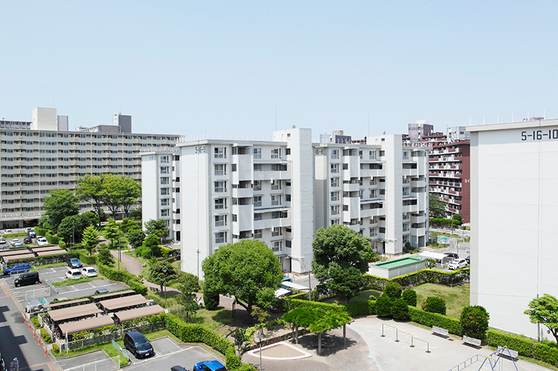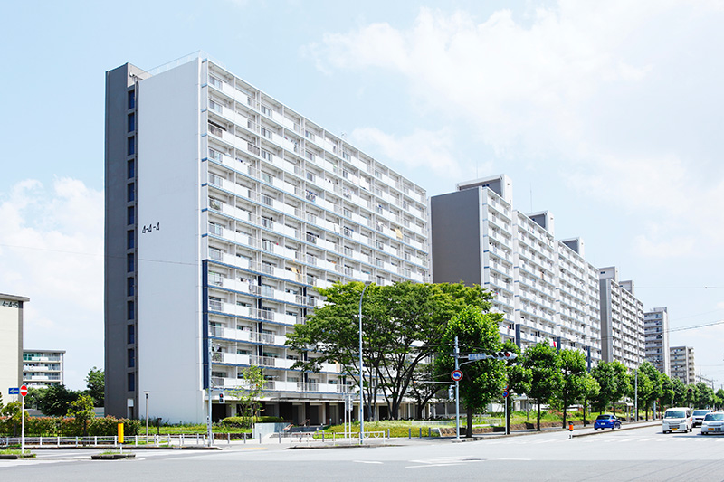 真砂第一団地は、2,044戸の広大なエリア。今回リノベーション対象になっている4つの住棟はいずれも8階建です。