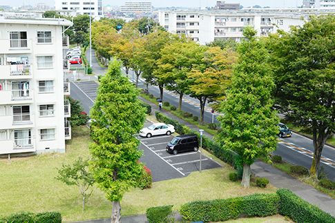 市の出張所、病院、郵便局、銀行、スーパーなど、生活に必要な機能は全て団地の中心部に集結しています。特に150台の駐車場を完備し、24時まで営業している大型スーパーが中心部にあり、日常的な用事は全て団地内で済ませることができるのも魅力。