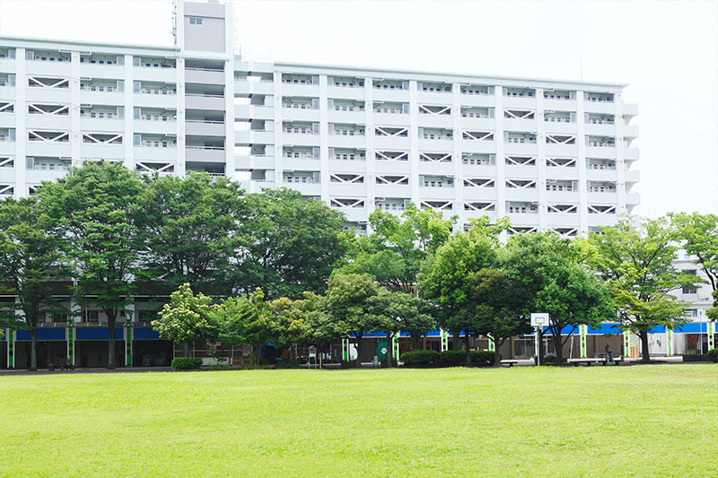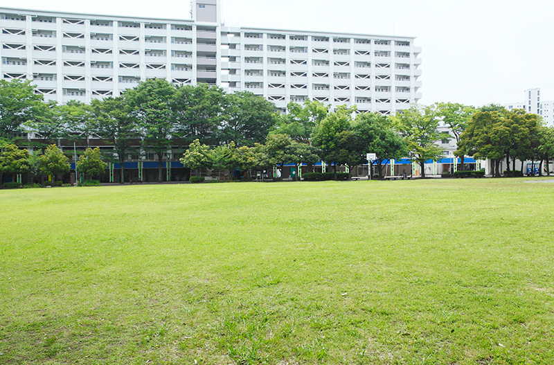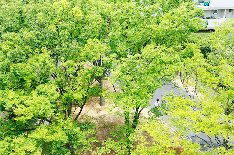 住棟部分は5階建の中層棟がメイン。採光を意識して住棟が配置されているため、どこにいっても日当たりが良いのは暮らしにとっても大きなポイントですね。
