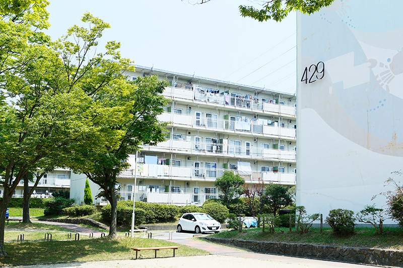 MUJI×UR団地リノベーションプロジェクトが手掛けるのは、新多聞団地の3つのエリア[100番台(MUJI×UR plan27)・400番台(MUJI×UR plan26)・500番台(MUJI×UR plan28)]。少し中心から離れていますが、その点静かでゆったりとした暮らしが送れるでしょう。小高い丘から明石の街を見下ろす素敵なロケーションにあるこの新多聞団地での暮らしを楽しんでいただければと思っています。